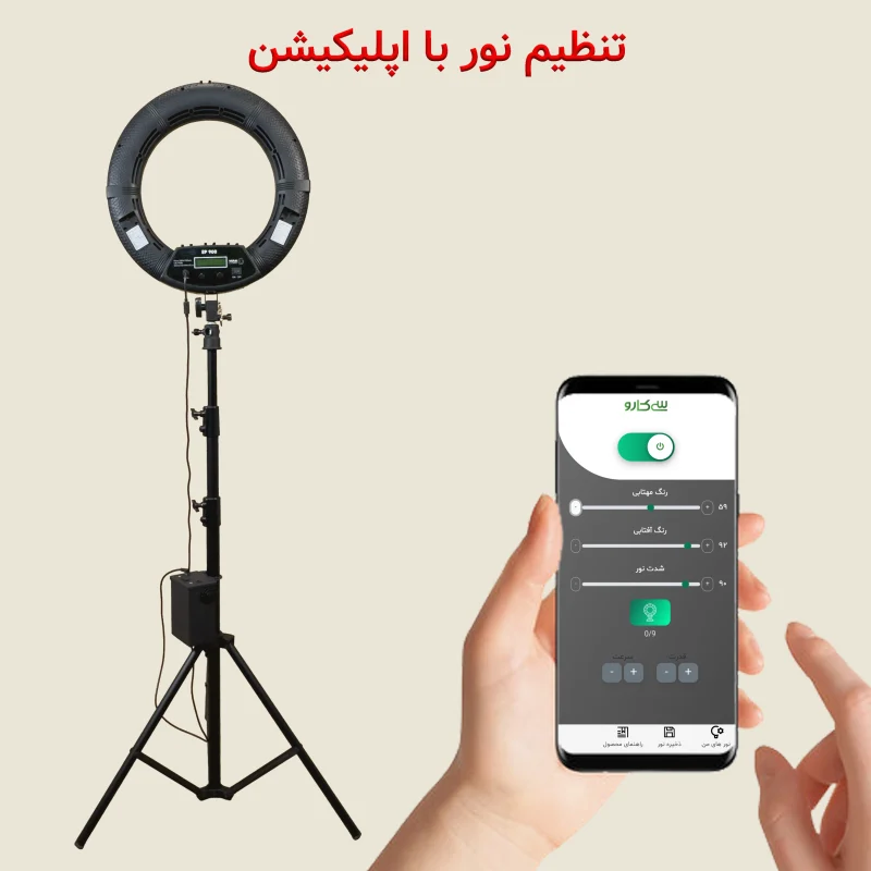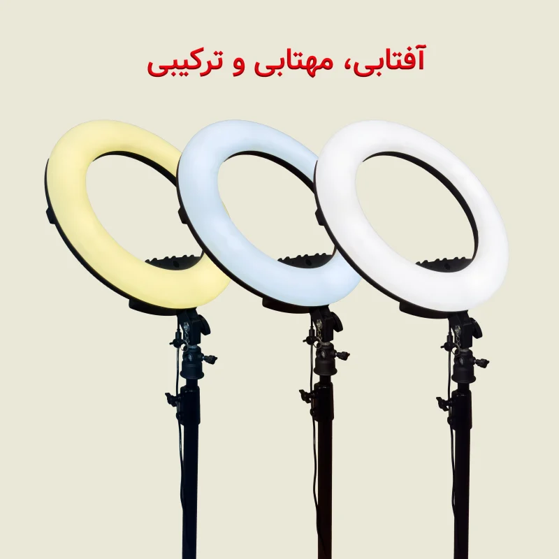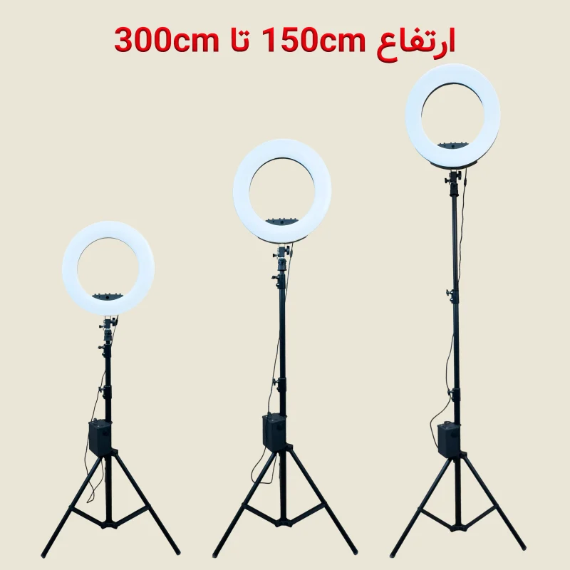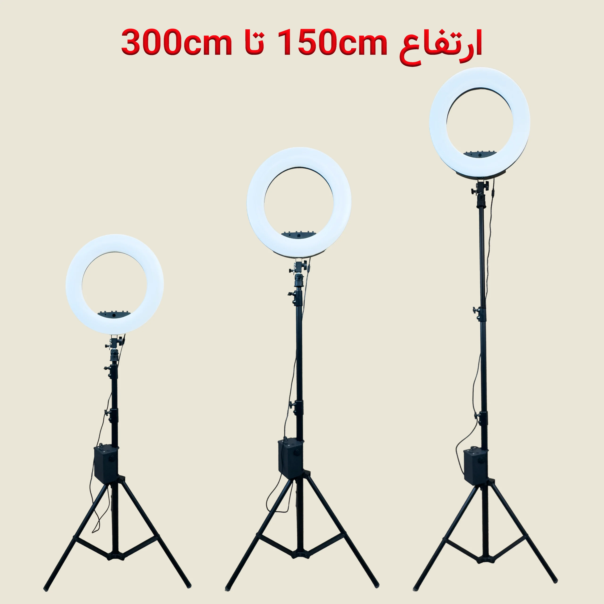 رینگ لایت 18 اینچ 200 وات شارژی | دیجیتال | همراه سه پایه + یکسال گارانتی